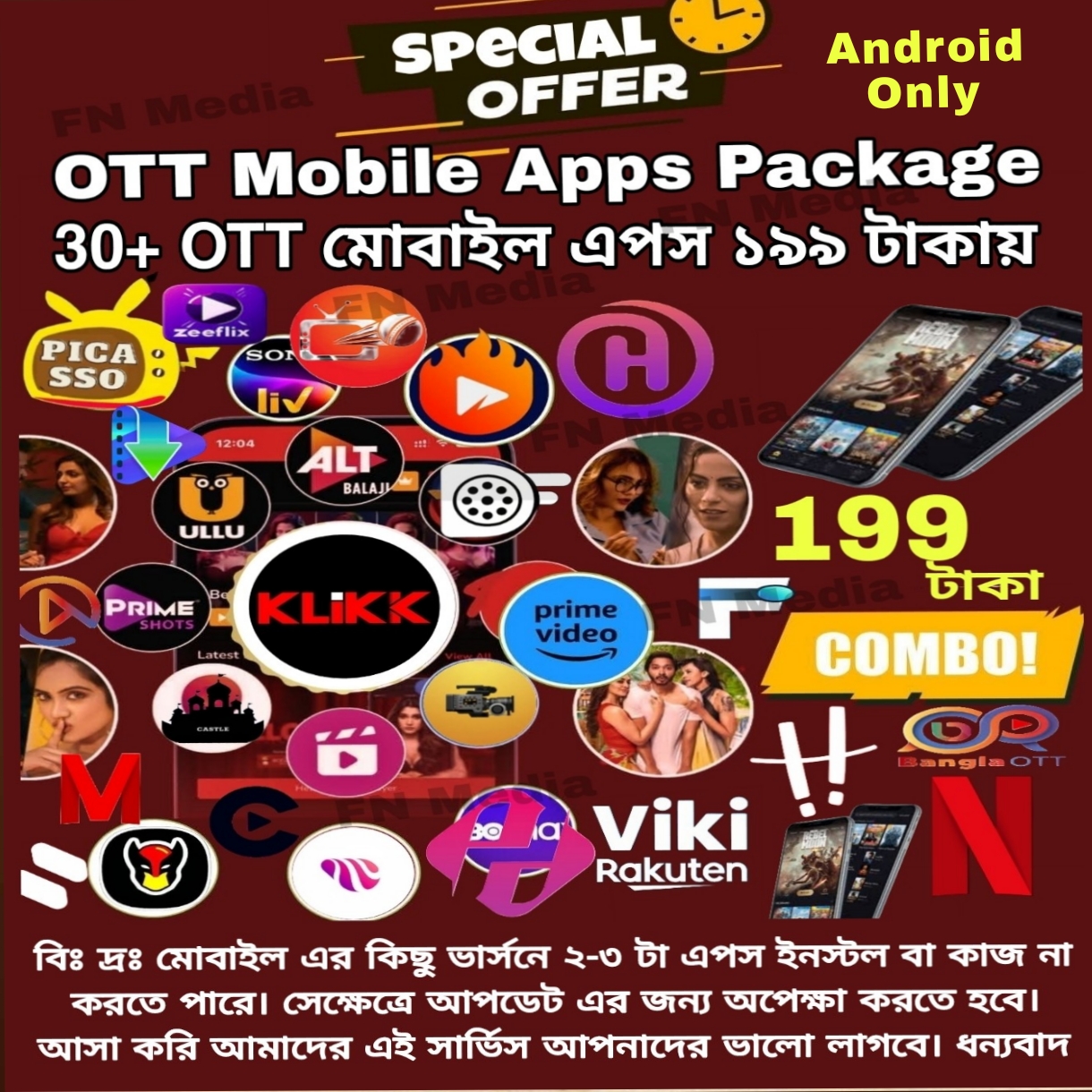 এছাড়াও আরো কিছু ওটিটি এপস পাবেন আমাদের প্যাকেজে।