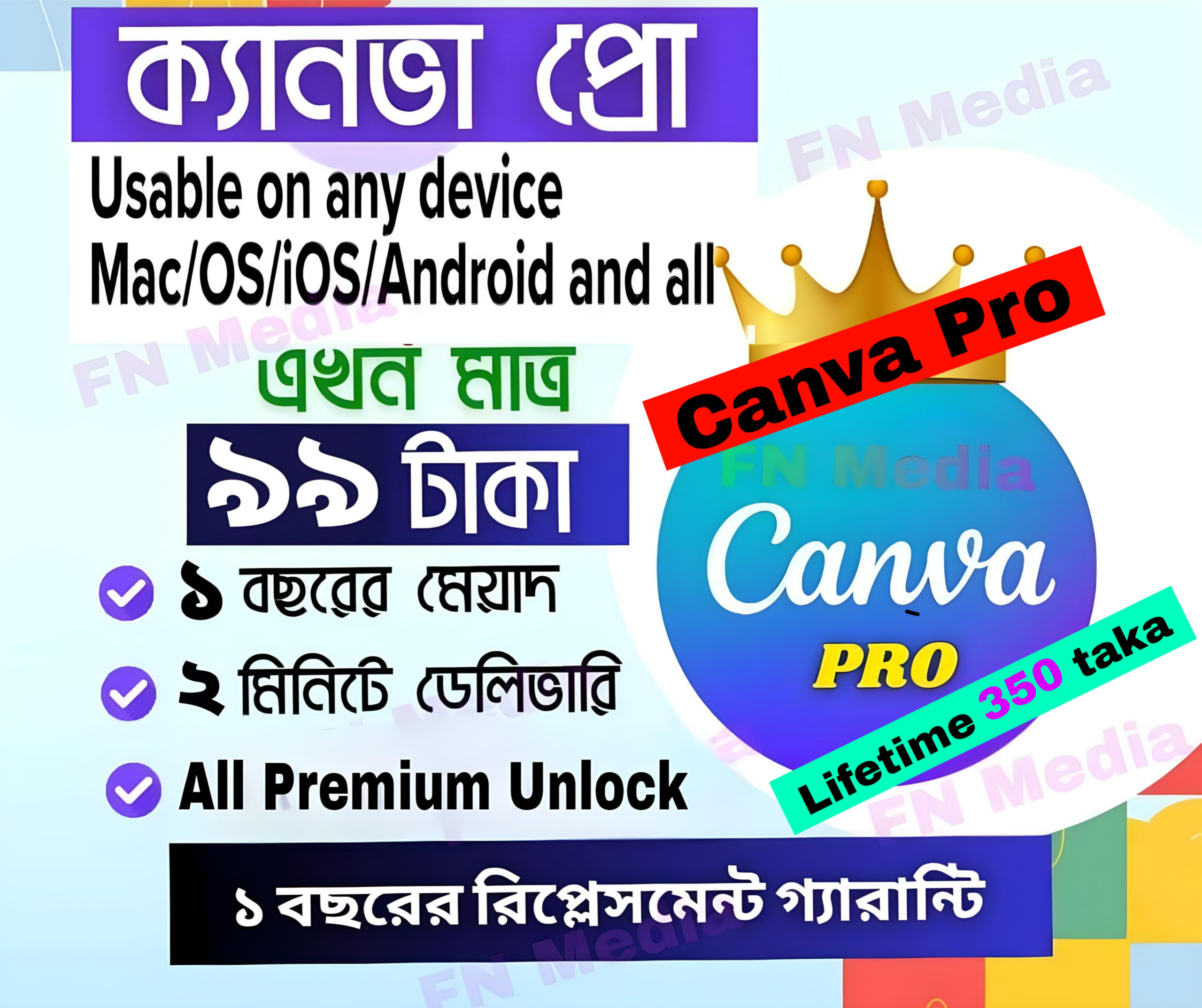 কম টাকায় একাউন্ট কিনে বা ফ্রি অ্যাকাউন্ট নিয়ে আপনাদের অ্যাকাউন্ট ১ মাসেই বন্ধ হয়ে যাচ্ছে! তাহলে এই অফার আপনার জন্য! FN Media দিচ্ছে Canva Pro সেই সাথে মানিব্যাক গ্যারান্টি।